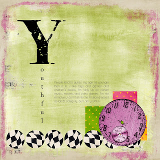 I've been working on the February Adventure Quest, which is The Adjective Project. We're to come up with an adjective that describes us for each letter of the alphabet and create a project using them. I'm nearly done! I'm working on 'V' right now. They are sort of hybrid scrapbook/art journal style but they are my style so that's okay. Here is the first batch, more to follow.